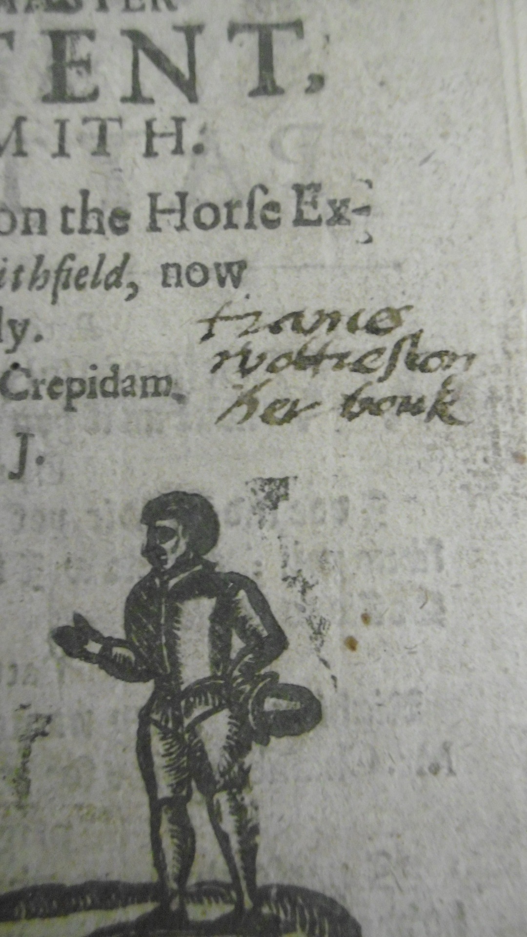 T.J. A discourse, betvveene Vpright the shoomaker and Master Pattent, the smith : both meeting on the horse exchange in Smithfield, on the 20. day of Aprill 1639 (London : Printed by B. Alsop, and T. F[awcet] for Francis Groves dwelling on Snow-Hill neare the Sarazens Head, 1640)