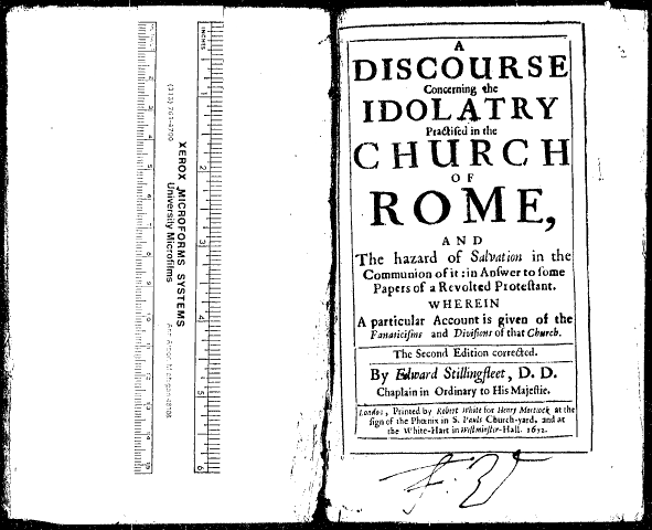 Cressy, Serenus. A collection of several treatises in answer to Dr. Stillingfleet (Paris : By the widow of Antonie Christian, and Charles Guillery)